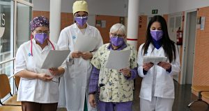 La lectura del manifest del #8M d’aquest any han participat dones professionals de la salut del CAP, Centre d’Atenció Primària de Sant Andreu de la Barca. Un homenatge per la tasca realitzada durant la pandèmia de la Covid-19.