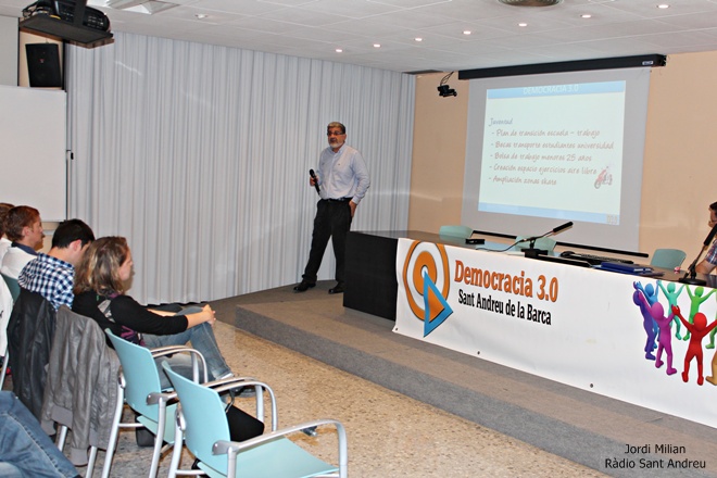 José Manuel Garcia Bravo, cap de llista de D 3.0 ha presentat el programa electoral a la Sala de Conferències de Les Escoles Velles de Sant Andreu de la Barca.