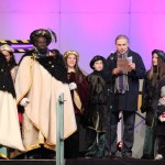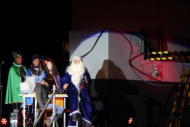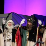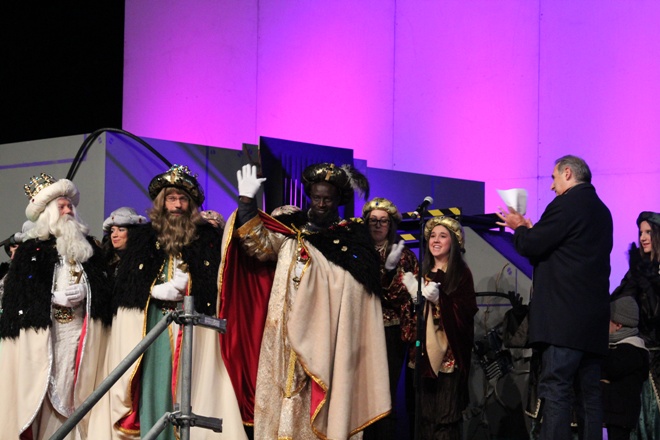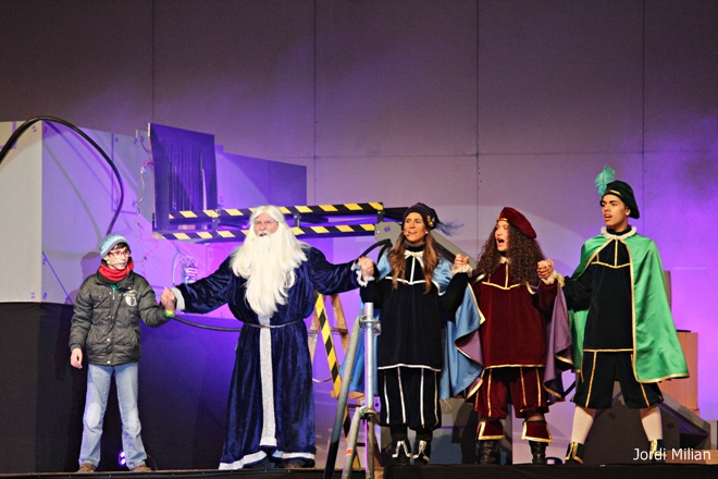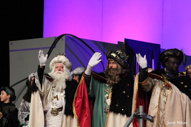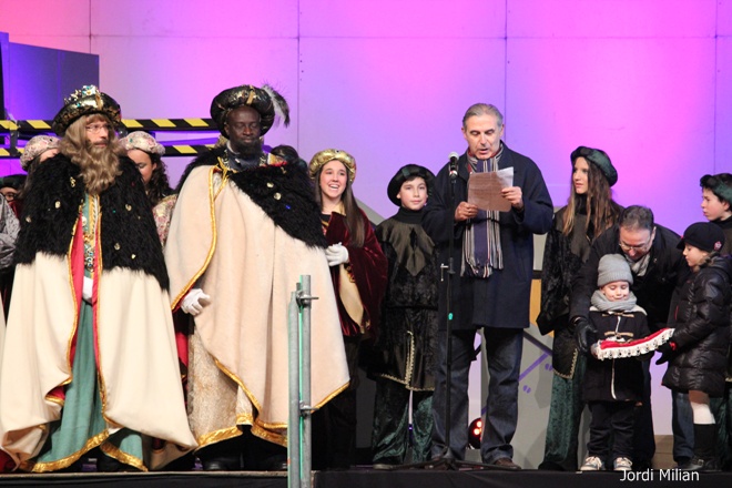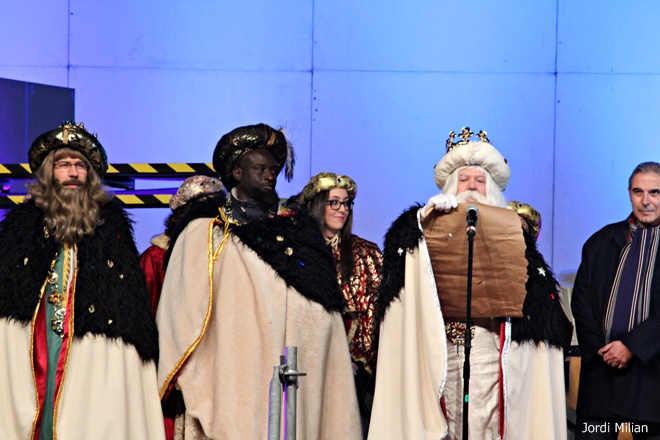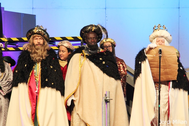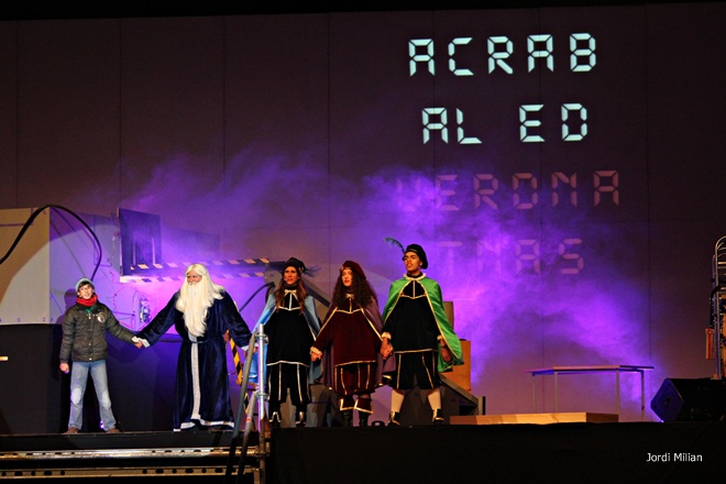 Com cada any i gràcies a les paraules màgiques ‘ACRAB ALED UERDNA TNAS’ pronunciades pel mag i que han repetit els milers de nens que han estat a l’esplanada del mercat setmanal per presenciar en directe l’arribada, han aparegut Melcior, Gaspar i Baltasar.