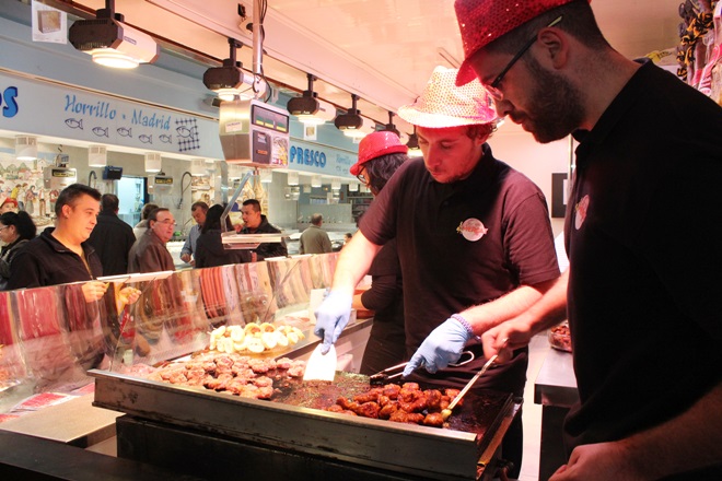 Durant la celebració de la NIT DE SHOPPING, els paradistes del mercat van preparar més de 100 tapes.