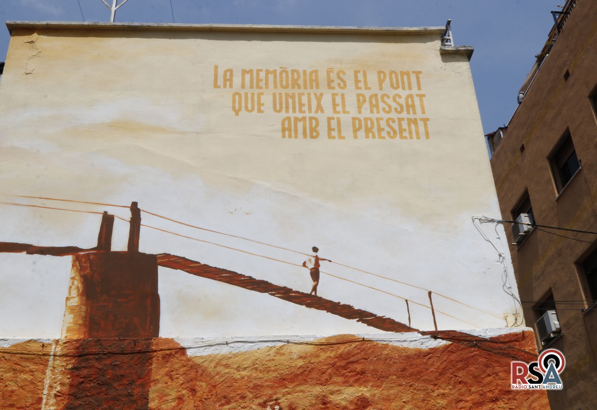 Un mural sobre memòria històrica amb una imatge històrica a Sant Andreu de la Barca com és el símbol de La Palanca que permetia passar de banda a banda dle riu Llobregat.