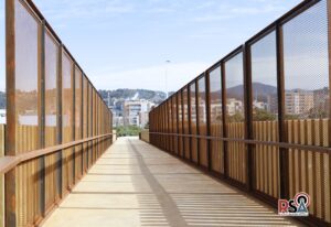 Ja es pot creuar la pasarel·la que uneix l’esplanada del carrer Anoia i el Parc Central.