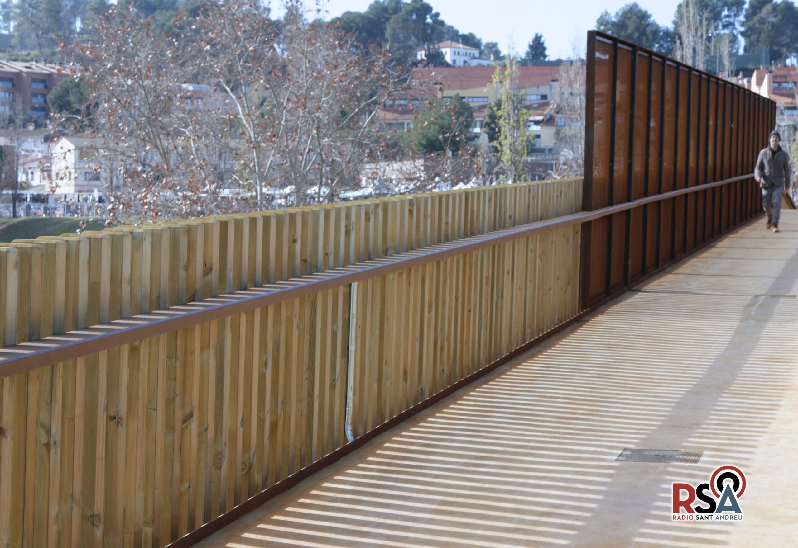 Ja es pot creuar la pasarel·la que uneix l’esplanada del carrer Anoia i el Parc Central.