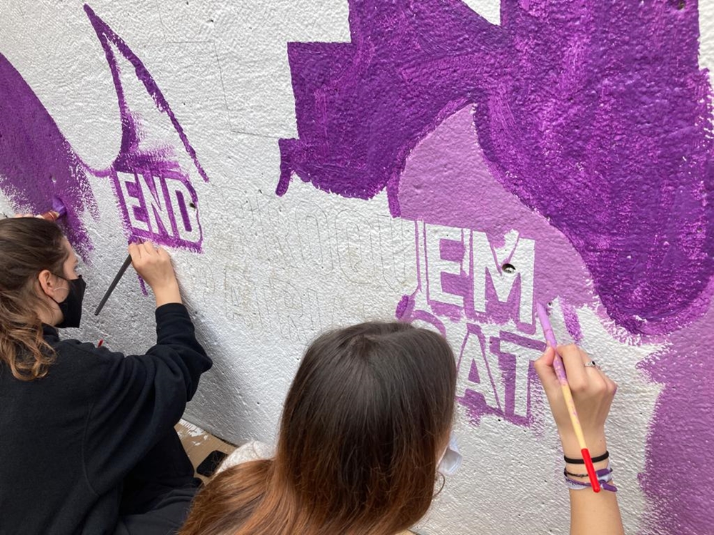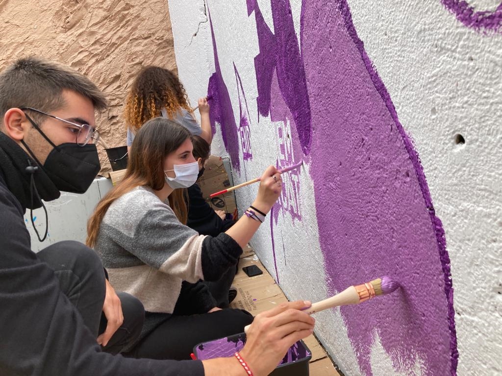 El mural està situat al costat de l’estació de Ferrocarrils al passeig Rafael de Casanovas i l’acció forma part de les activiats previstes per commemorar el dia 8 de març el Dia Internacional de la Dona.