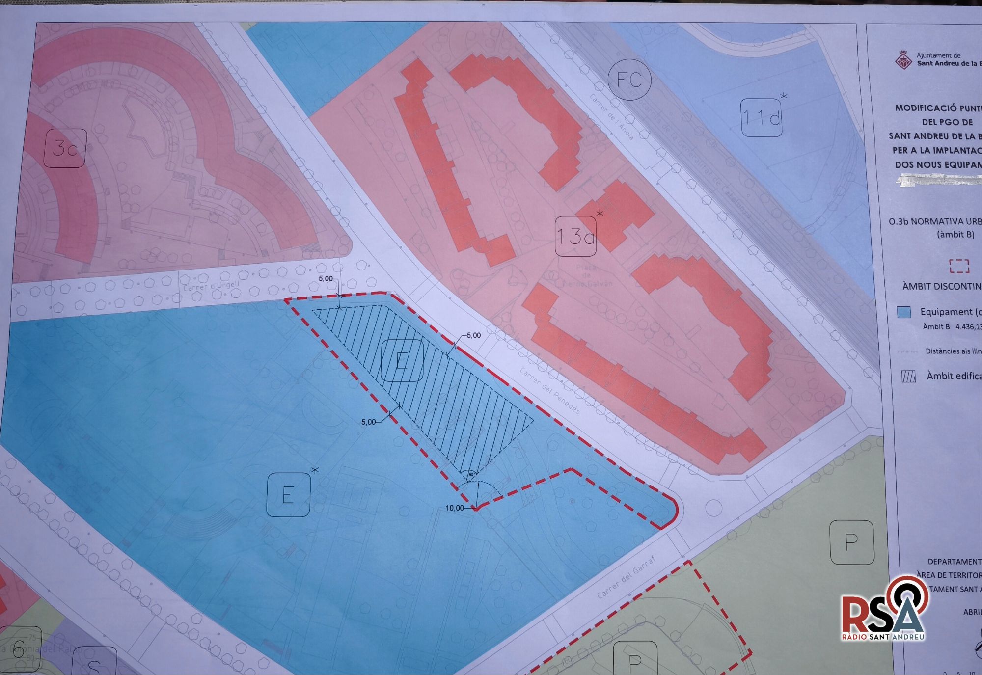 La modificació urbanística permetrà qualificar com a sòl destinat a equipaments una nova parcel·la de 4.436,13 metres quadrats, ubicada al barri de la Plana, just al costat de l’actual Centre Cívic i de la futura Escola Bressol La Quimeta.