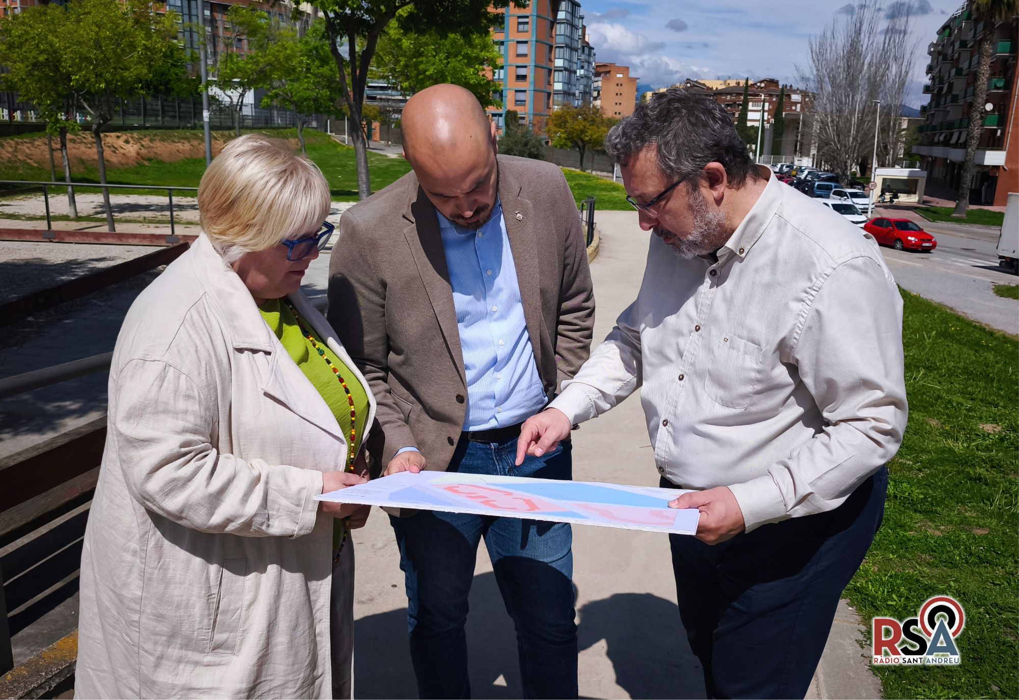 L’alcalde Marc Giribet, el regidor d’Urbanisme Joan Jansana i la regidora de Serveis Socials, Eunice Martín ha destacat els motius del canvi de planejament urbanístic i les millores que poden suposar per a la ciutat, la construcció del nou CAP.
